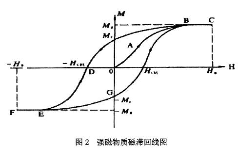 磁開關內部裝有鐵質的彈性簧片,在低頻磁場中,鐵質簧片被磁化,從而使彈性簧片吸合導通,而油位計內部磁翻板未達到磁開關動作值的位置,所以監控誤報油位異常信號。當機組停機時,勵磁電纜中電流消失,但此時磁開關誤動作信號并未復歸,下面將通過磁滯回線的概念來解釋此現象。