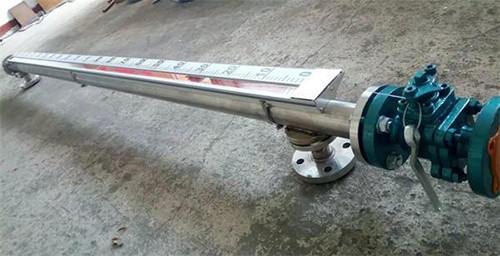 3、磁翻板液位計安裝必須垂直,磁翻板液位計與容器引管間應裝有球閥,便于檢修和清洗;