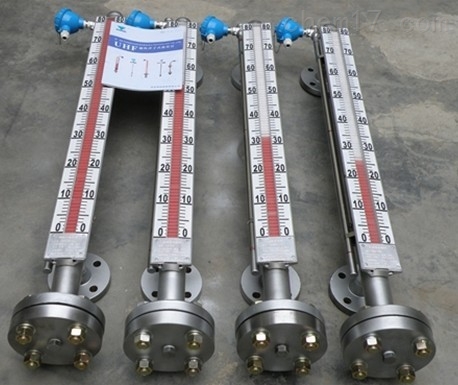 UHZ系列磁翻板液位計是我公司按原化學工業部行業標準HG/T2742-1995《磁性浮子式液位計技術條件》并參照HG/T21284-95《磁性液位計》開發生產的產品。由于其跟液位同步上升的磁浮子通過指示器上的磁翻柱耦合翻轉來顯示液位,顯示器不直接與容器連通,所以可以制成防泄漏、耐高壓、及腐蝕條件下測量的液位計。可靠性好,使用安全、指示醒目、測量范圍寬、安全方便。克服了玻璃管(板)式液位計受高低溫劇變易破碎及耐壓低的缺點。