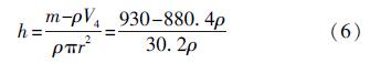式中:h為直筒底部距離浮球浸在水中時水面的高度。由于浮球在水中的浮力等于它自身的重力,由此可得: