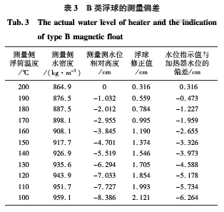 由圖2可得,當測量通道中水溫在100℃時,測量通道中的水位會低于實際水位,約8.4cm,從而可以看出△h與測量通道中水的溫度以及加熱器內水位高度密切相關。磁浮球一旦按照額定工況制作好后,其*大補償值便成定值,該補償作用有限,無法完全補償因溫度差異導致的測量筒中水位與加熱器實際水位的偏差。