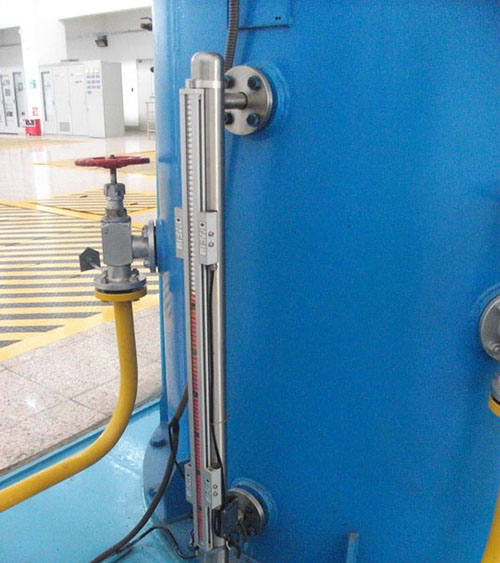 3、按照堿液液位計設計的原理因該是液位到哪兒,浮子就因該在什么位置。既然在液位和空氣的臨界點是紅色的翻柱,那么因該表示浮子沒有被卡住,這就好辦了,直接把空氣臨界點以下翻板用的磁鐵利用磁耦合作用給翻過來成紅色翻柱就好了。要是重新投用液位計浮子的話得把液位降到零位。通常是磁轉子卡了,發現情況后可以看下顯示器是否已經損壞,是不是被混進異物。如果沒有,那么就說明是浮子卡。用磁棒在筒壁上感應一下,確認浮子的位置,確認浮子沒卡,然后將磁浮子的下部分刷成紅色翻柱,以上為白色翻柱,若客戶還不放心,可打開排污閥先排放,排放后重新投用。