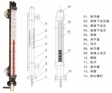 根據(jù)浮力原理,浮子在測量管內(nèi)隨液位的升降而上、下移動,浮子內(nèi)的永久磁鋼通過耦合作用,驅(qū)動紅、白色翻柱翻轉(zhuǎn)180°,液位上升時翻柱由白色轉(zhuǎn)為紅色,下降時由紅色轉(zhuǎn)為白色,從而實現(xiàn)液位指示。