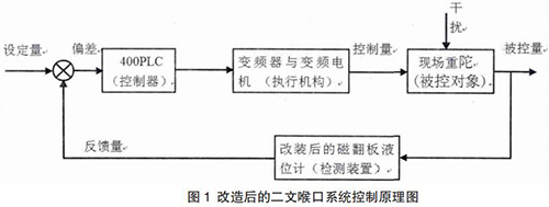 從圖 1 中可以看到改造后的系統(tǒng)采用帶負反饋的閉環(huán)控制原理,通過反饋系統(tǒng)使系統(tǒng)的精確度提高,響應時間縮短。當受控客體受干擾的影響,其實際狀態(tài)與期望狀態(tài)出現(xiàn)偏差時,控制主體將根據(jù)這種偏差發(fā)出新的指令,以糾正偏差,抵消干擾的作用。