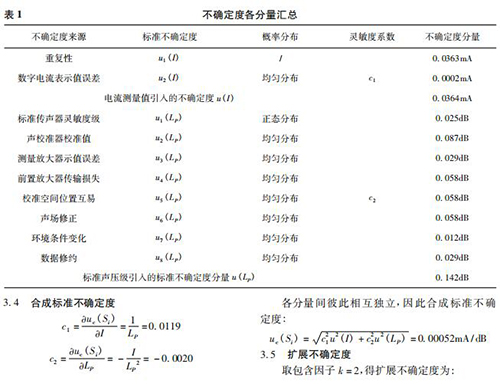 定度 u1 ( LP ) 用 B 類標準不確定度評定。根據標準傳聲器檢定**,標準傳聲器聲壓靈敏度級在 1kHz 時的擴展不確定度為 U = 0. 05dB,k = 2,則其對應的標準不確定度為: