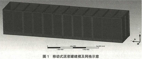 (2)考慮在使用過程中,可能出現兩個滿載的相同泥漿罐疊放的*端工況,因此底部泥漿罐在滿載的情況下還要承受上部相同尺寸的滿載泥漿罐的自重。將上部滿載泥漿罐的自重等效為加載在下部泥漿罐頂結構的均布壓力其中,見為滿載泥漿槽自重,識=168782x9.81=1655752為儲存罐頂部方管的長度乂=29.丨8111。因此/^56.8犯11?。