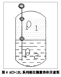磁致伸縮式液位計出廠是根據用戶提供的“上密度”和“下密度”確定浮子的重量。在測量界面時,實際上是浮子浮在界面上,所受的浮力和重力相等。公式為:W=F=Vlpl+(V-Vl)p2 W—浮子重量;F—浮子受到的浮力;V1—浸入下液體的體積;V—浮子體積。