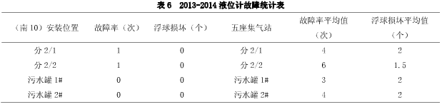 如上表6:ACD-1DL系列液位計故障率較低,平均值約1次,同比磁浮子液位計故障率平均值4次,浮球損耗ACD-1DL系列液位計為0個,同比磁浮子液位計浮球損耗約2個。ACD-1DL系列液位計故障率大大降低,減輕了員工勞動強度。