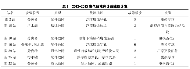 通過表1可以總結集氣站翻柱式浮子液位計主要存在以下幾種故障: