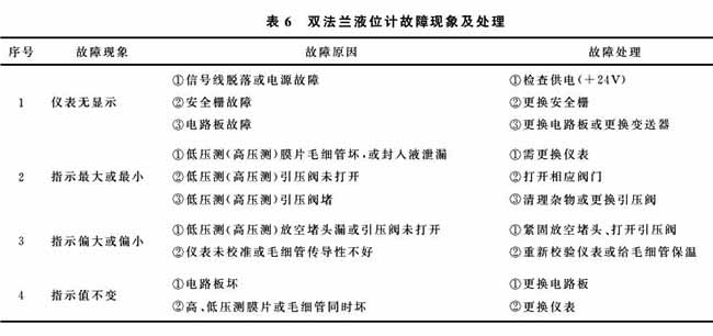 因老式玻璃板式液位計沒有詳細刻度,該數據為粗略目視值。另外,2012年新建20萬t/a合成氨系統2000mj液氨球罐上安裝有一臺LevelflexFMP51纜式導波雷達液位計(位號:LT1201A)和一臺磁翻板液位計,該信號均引人DC'.S顯示。在開始安裝調試過程中發現雷達液位計與磁翻板液位計顯示不一致,經檢查發現導波雷達液位計取樣管原始高度不正確,經重新調整并對其相關參數進行設定后測量顯示一致。長期穩定運行,給工藝控制提供了準確數據,滿足了工藝要求,有效地保障了設備和人身安全。2014年4月儀表人員抽樣比測記錄數據,見表2所示。