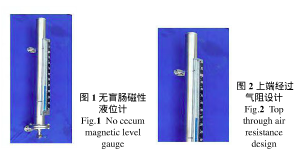 ③ 測量結(jié)果誤差較大。現(xiàn)在正逐漸選用基于磁耦合原理設(shè)計的磁翻板液位計代替玻璃板液位計,此液位計是基于阿基米德定理,磁性浮子在液體中產(chǎn)生浮力,根據(jù)磁鐵同性相斥,異性相吸的性質(zhì)制成。但傳統(tǒng)的磁翻板液位計也存在一些弊端,如其下端浮子腔為盲腸結(jié)構(gòu),設(shè)備盲腸在石油石化系統(tǒng)是1個大的安全隱患,介質(zhì)腐蝕物的積聚對該處焊縫產(chǎn)生應(yīng)力腐蝕開裂,介質(zhì)中的水分在該處沉降,冬季有產(chǎn)生凍凝的風(fēng)險,這些隱患時刻威脅著企業(yè)的安全。